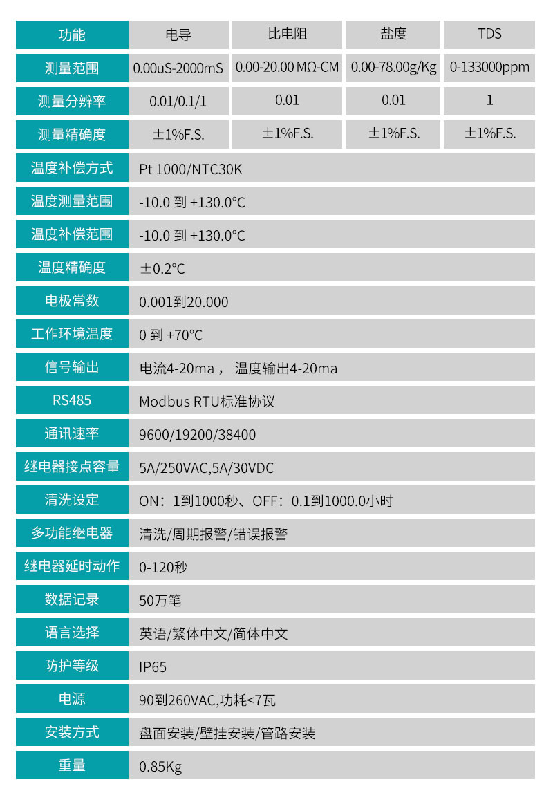 適用場合:無論是常見的自來水,鍋爐給水,純水,超純水,還是工業用水,污水等,米科MIK-TDS210電導率搭配不同電極,都能很好適應現場測量