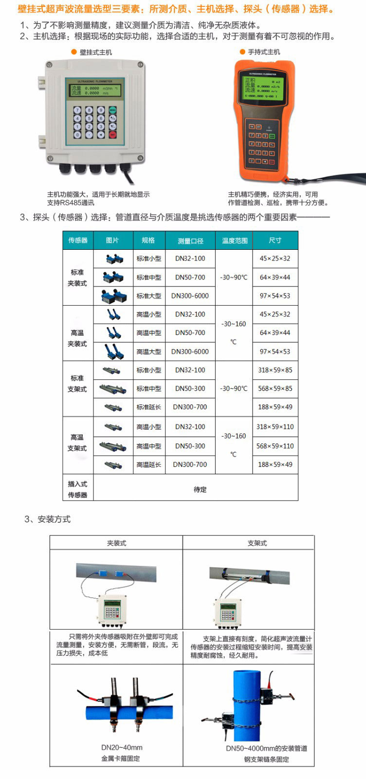 適用場合:超聲波熱量表是通過超聲波的方法測量流量及顯示水流經熱交換系統所釋放或吸收熱能量的儀表。它通過兩種傳感器測得的物理量——熱載體的流量和進出口的溫度,再經過密度和熱焓值的補償及積分計算,才能得到熱量值。