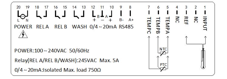 7、TEMPC:溫度測量端C,PT1000/PT100三線制的地,PT1000/PT100      兩線制需短接到TEMPB,NTC10K不用接TEMPC