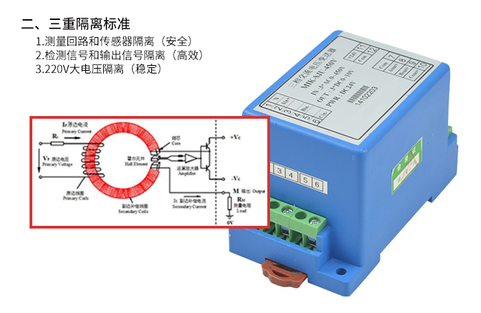 MIK-SJI三相交流電流變送器是一種將電網中的三相交流電流隔離變送成線性的直流模擬信號的裝置。可用于測量電機交流三相電流。